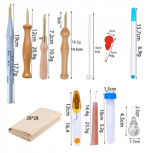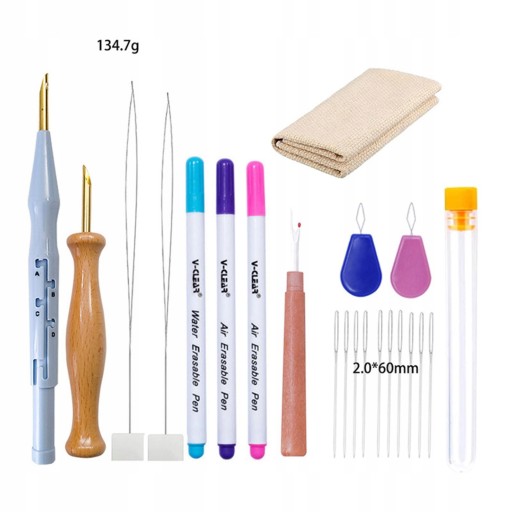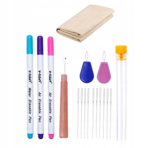Що ви отримуєте: разом із ножицями входить 1 пластикова перфораційна голка, 2 дерев’яна ручка, 1 водорозчинна ручка, 2 тканини для вишивання, 2 нитковдевачі, 1 ножиці, 1 пляшка для голки (включно з голкою), 1 натягувач для вишивання, 2 швидкі голки. нитковдевач; Пакет без ножиць включає 1x пластикову перфораторну голку, 1x дерев'яну ручку, 3x водорозчинну ручку, 1x тканину для вишивання, 2x нитковдевач, 1x розпушувач швів, 1x голкову пляшку, 10x голки з великими вушками, 2x нитковдевач.