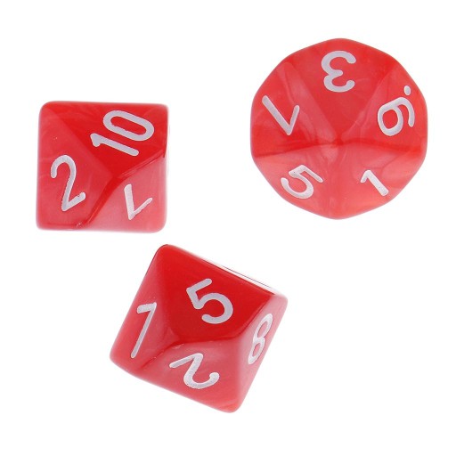 10 частин червоних багатогранних кубиків