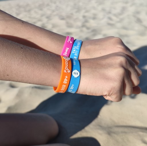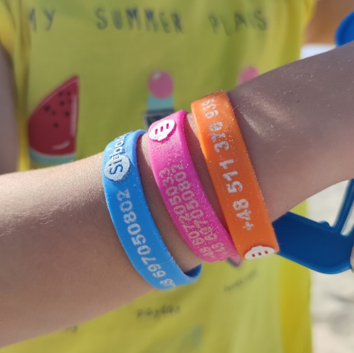 Наші нарукавники ефективно захищають дітей від несподіваних ситуацій під час свят, прогулянок або заходів на свіжому повітрі, де наш малюк може загубитися в натовпі. Браслети з номером телефону батьків - ідеальне рішення, яке дає дитині відчуття безпеки та можливість швидкого зв'язку з батьками, навіть під час відпочинку за кордоном.