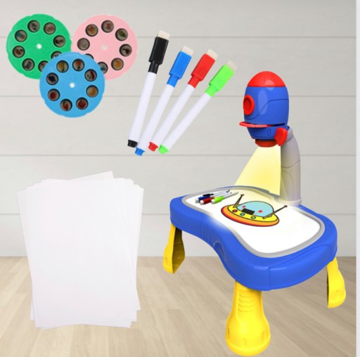 Представляємо вашій увазі дивовижний набір: столик з проектором у формі ракети для навчання дітей малюванню. Цей надзвичайний проект поєднує навчання, веселощі та захоплюючі космічні пригоди, створюючи незабутні враження для юних художників.