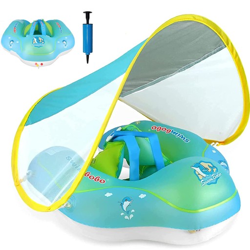 Нові зміни для вас: нове та вдосконалене кільце для плавання дитини зі знімними тентами, щоб дитина не котилася; нижня опора запобігає ковзанню дитини; ненадувний поролон захищає живіт малюка; Передній шнурок і пряжка безпеки забезпечують ідеальне положення для плавання, щоб убезпечити вас у воді.