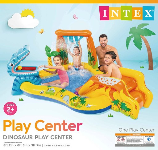Надувний майданчик INTEX - чудова ідея для проведення вільного часу в літні дні для всієї родини. Розміри: 249 см х 191 см і міцність: 81 кг дозволяють розмістити всередині до трьох дітей одночасно.Завдяки різноманітності атракціонів нудьгувати не буде жодній дитині!
