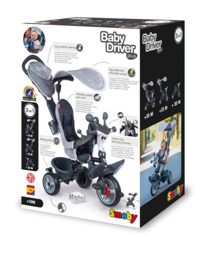 â З 30 місяців â Baby Driver Plus трансформується в триколісний велосипед. Фіксатор керма запобігає надто сильному удару керма. Завдяки цьому кожна дитина може кататися самостійно