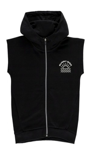 Бавовняний, чорний світшот - без рукавів, застібається на блискавку, з вшитим принтом і ніжним принтом спереду.