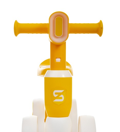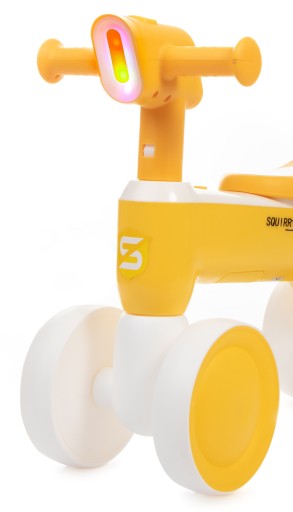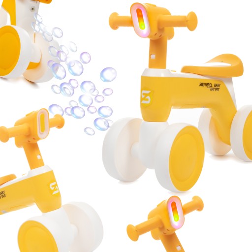Жовтий чотириколісний велосипед Lumina-11 оснащений багатьма цікавими функціями, які неодмінно сподобаються кожній дитині. Різнокольорове переднє світло зробить поїздку ще приємнішою, а функція створення мильних бульбашок неодмінно порадує кожного малюка. Крім того, велосипед має вбудований динамік, завдяки якому дитина під час катання зможе слухати музику, завантажену в пам'ять мотобайка. Чудове задоволення також доповнить гудок із приємним ніжним звуковим сигналом.