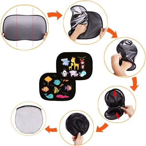 - Сонцезахисна шторка для бічного вікна не потребує додаткових присосок чи наклейок, вона легко кріпиться до бічного вікна та легко знімається та складається.