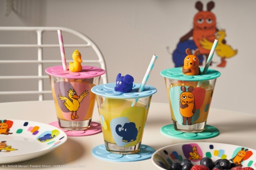 Кришка з отвором для соломинки робить набір ідеальним для використання на вулиці. Дітям не доведеться турбуватися про комах, які можуть бути в їхньому напої. У комплект також входить підставка, яка стабільно утримує скло.