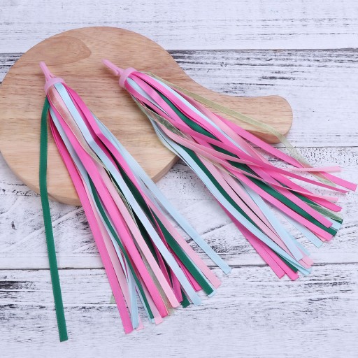 Характеристики Колір: як показано. Матеріал: нейлон. Розмір: приблизно 29 x 5 x 5 см. Чудовий колір і блиск для ідеальної прикраси. Простий і цікавий спосіб для дітей одягнутися у велосипеди. Лінії серпантинів літатимуть і танцюватимуть на вітрі під час їзди. Вставляється в кермо більшості дитячих велосипедів, триколісних велосипедів і самокатів.
