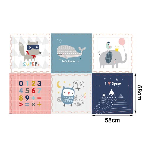 - Матеріал: XPE Розмір окремого шматка: 58*58 см У комплекті: 6* ігрових килимків. Примітки: 1. Вимірюйте вручну, дозвольте помилку 1 ~ 3 мм, дякую. 2. Через різницю між різними моніторами зображення може не відображати фактичний колір предмета. Ми гарантуємо, що стиль відповідає зображенню.
