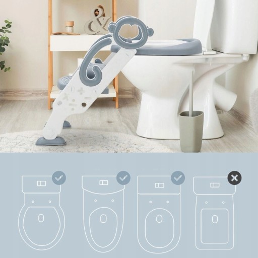 Регульована підніжка: кут підставки для ніг можна регулювати для туалетів різної висоти. Вона має 2 регульовані висоти, щоб адаптувати драбину до росту дитини.
