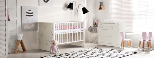 Тонований вигляд: Його універсальний колір у поєднанні з класичними ручками означає, що предмет меблів знайде своє місце в дитячій кімнаті. Делікатний принт у вигляді зірочок надає комодові характерності.