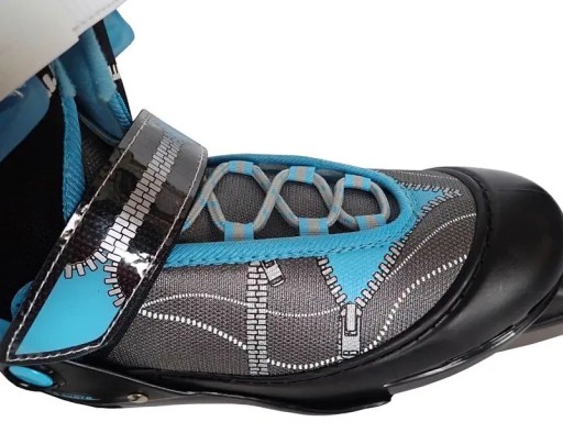 Легке регулювання взуття на чотири розміри 30-33 = 19-21 см. Довжина внутрішньої устілки при найменшому встановленому розмірі 30 становить 19 см. Ковзани виготовлені з пластикового скелета і внутрішнього текстильного черевика, який має м'яку підкладку для максимального комфорту. Є класична шнурівка, текстильна пряжка на липучці та пластикова пряжка для надійної фіксації ніг. Ковзани мають водонепроникне покриття (просочення), яке перешкоджає проникненню вологи всередину взуття і водночас запобігає замерзанню ніг. Тим не менш, ми рекомендуємо періодично просочувати ролики наявними в продажу засобами для просочування. Потім черевик можна підтягнути в міру необхідності. Потім важіль слід зафіксувати у вихідному положенні, щоб він був паралельний лезу. (Важіль можна повертати в обидві сторони, потрібно дотримуватися правила, що він повинен бути спрямований паралельно ножу ...).
