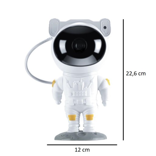 Проектор виготовлено з високоякісних матеріалів з увагою до деталей. Він довговічний, а запуск займає буквально 2 секунди і дуже простий. Світлодіодний проектор був вбудований в рухому голову космонавта. Завдяки вбудованим магнітам він надійно утримує корпус і дозволяє легко регулювати кут світла. Яскраві зірки, динамічний ефект планетарних туманностей у далеких галактиках і милий астронавт. Все це робить його веселим і цікавим подарунком для дітей.