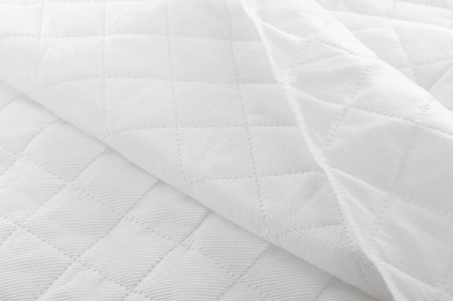 Верхня сторона виробу, яка безпосередньо стикається з тілом, виконана зі 100% бавовни. Цей натуральний матеріал м'який, дихаючий і приємний до шкіри, забезпечуючи комфорт під час сну. Нижня сторона протектора - поліуретанова мембрана - вона запобігає витоку рідини, плям і бруду всередину матраца. Він водонепроникний і легко чиститься.