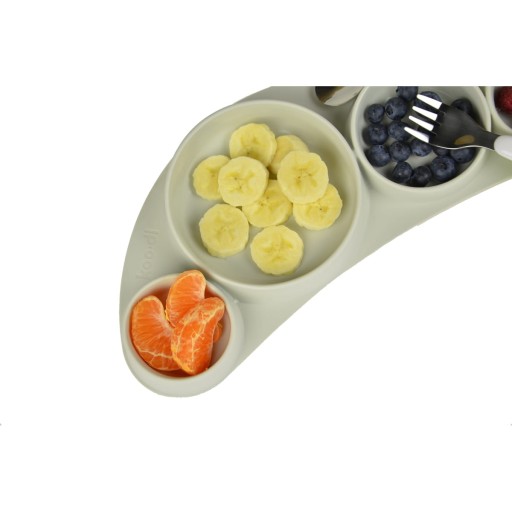 Силіконова тарілка Tiny Tapas Koo-di була розроблена, щоб допомогти вашій дитині навчитися їсти самостійно.Піднятий край ззаду допомагає черпати їжу ложкою або виделкою. Тарілка Koo-di - чудовий вибір для адаптації методу BLW, коли в раціон вводиться тверда їжа. Виготовлена з протиковзкого силікону, що запобігає ковзанню під час їжі або падінню. Додатково має 4 відділення для розділення їжі. Підходить для більшості стільчиків для годування.