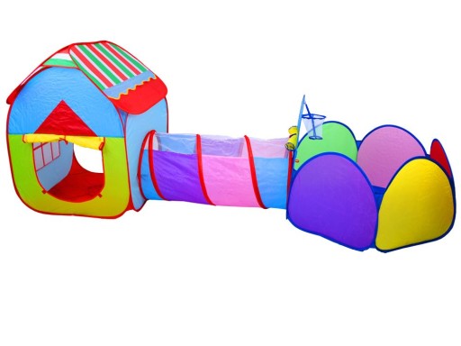 Сенсаційний набір 3 в 1 для гри в намет садовий тунель - це пропозиція для кожної дитини. Барвистий будиночок швидко розбирається, має три окремі ігрові елементи. Будинок з вікнами та дверима має критий вхід, щоб дитина мала хвилину усамітнення. Будиночок можна з'єднати з тунелем, завдяки чому малюк зможе трохи потренуватися повзати і дістатися через тунель до манежу. Дитячий манеж з баскетбольним м'ячем дозволить кожному малюку грати свої матчі.