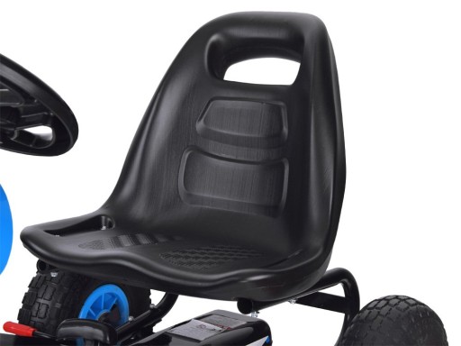 Картинг виготовлений з легкої металевої конструкції з пластиковими аксесуарами. Великий, Янадувні гумові колесаА зручне, профільоване сидіння забезпечить комфорт водіння. Сидіння має двоступеневе регулювання відстані до керма, завдяки чому воно легко підлаштовується під зріст дитини.Ручне гальмо забезпечить безпечне гальмування під час непередбаченої ситуації.