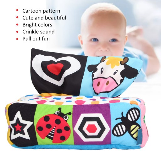 2. Весела іграшка: ця сенсорна скринька для серветок розважатиме дітей годинами завдяки яскравим кольорам, шурхоту та веселощам. Ідеальна сенсорна іграшка для немовлят.