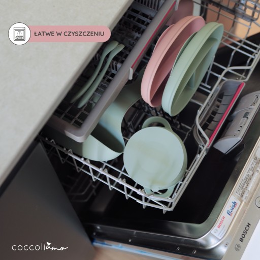 - Силіконовий посуд Coccoliamo - ідеальний продукт для дітей, які вчаться їсти самостійно, одночасно розвиваючи дрібну моторику.