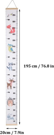 Підходить як для хлопчиків, так і для дівчаток, доступно 6 різних типів, які ви можете вибрати відповідно до ваших вимог. Це не тільки вимірювальний прилад, але й елемент для прикраси дорослої кімнати, дитячої або хмарної ігрової кімнати. Завдяки мотузці у верхній частині діаграми зростання його легко встановити або згорнути та видалити, безпечно та надійно використовувати. Гарний, нетоксичний матеріал, який може стати ідеальним подарунком для дитини, малюка чи малечі на день народження, Різдво чи День Подяки. Світло-холодний сірий колір, спеціально розроблений для діаграми зростання, щоб поєднуватися як з чорно-білими, так і з кольоровими стінами.