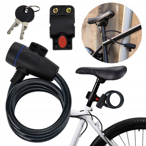 На замок можна замкнути не тільки велосипед, а й мотоцикл, скутер чи коляску, а також захистити ворота, ворота чи підвали. Кріплення повинно бути легким, щоб не ускладнювати і не обтяжувати водіння. Виготовлений з міцної, скрученої всередині металевої дроту і покритий високоякісним силіконом. У набір входить 2 сумісних ключа. Застібка має фіксатор, що значно полегшує застібання. Додатково в набір входить ручка для перенесення замка, яка кріпиться до сідла, і кришка для отвору для ключа.