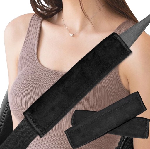 Накладки виготовлені з елегантного матеріалу ALCANTARA, прошиті міцними оббивними нитками, мають обробку по краях. Вони наповнені м'яким шаром губки, що підвищує комфорт під час подорожі та запобігає впиванню ременя в тіло.