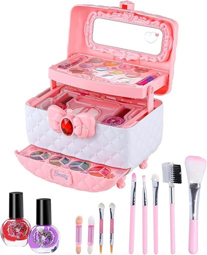 Чарівна коробка, наповнена іграшковою косметикою, є ідеальним подарунком для всіх маленьких принцес, які часто беруть косметику від своїх мам, щоб пограти в професійного косметолога, не виходячи з дому.