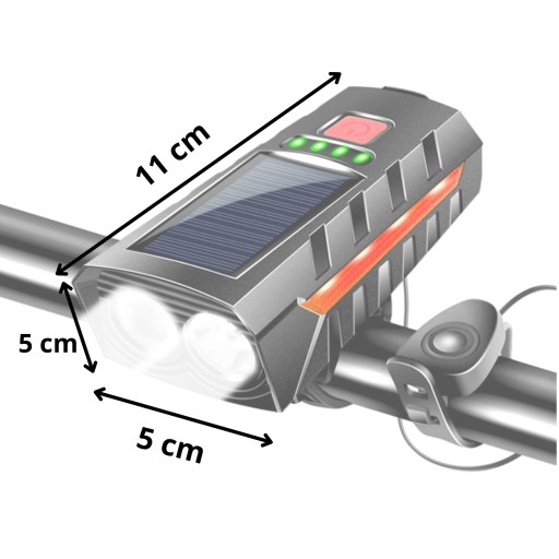 Лампа має вбудовану сонячну панель, підключену до акумулятора, завдяки чому лампа відновлює енергію під час їзди протягом дня. Таким чином час роботи лампи значно подовжиться.