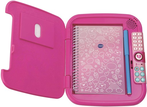 Чарівний щоденник від VTech - чудовий блокнот, в який можна записувати таємниці і захистити їх від прочитання паролем!На обкладинці є місце для фото власника.Чарівний щоденник має вбудовану можливість записуйте звуки та відтворюйте їх. Ви можете записати пароль до щоденника, використовуючи цифри на передній панелі. і відтворює голосові записи. Щоденник також має функцію модифікатора голосу та математичну гру «Знайди число». Усередині є зошит із спеціально відведені місця для секретів і даних власника Поруч з блокнотом всередині є спеціальне місце для кольорового маркера, який входить в комплект Всередині блокнота є спеціальне відділення для скарбів.
