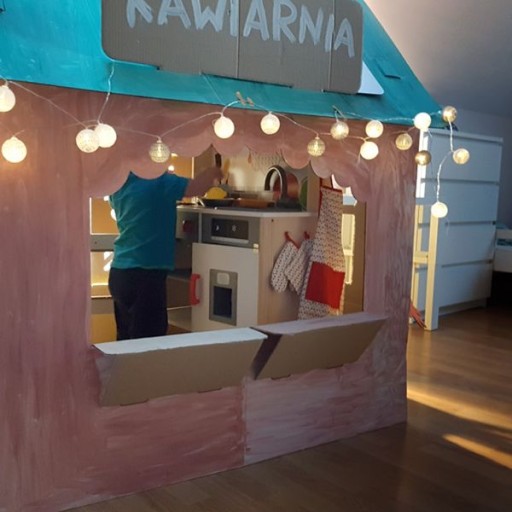 Має двері та віконниці, що відкриваються. Завдяки вивісці ділянку можна перетворити на кафе, магазин чи пошту, а значить, це джерело натхнення для довгих годин веселощів.