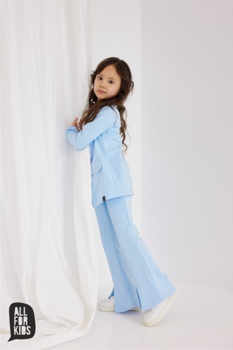 ПІДЖАК блакитного кольору в синьому відтінку, застібається на один гудзик і імітує кишені.