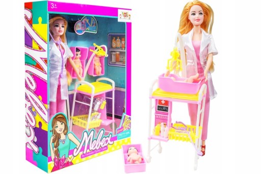 Медичний ігровий набір з медичними меблями ілялька педіатр, яка готова до консультації в стильному кабінеті, обладнаномуаксесуаринеобхідні для проведення обстеження та догляду за неюпацієнтів.