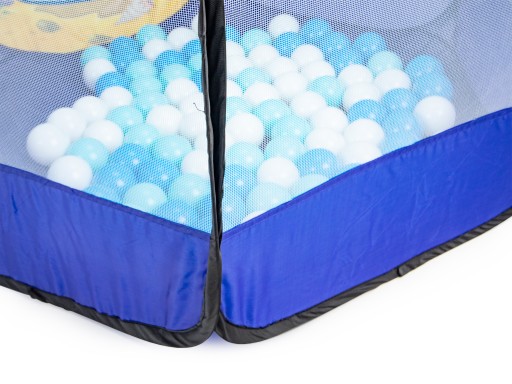 Підлога укріплена так, щонамет підходить для ігор вдома і на вулиці. Входить в комплект100 пластикових кульокдіаметром 6 см, які вони забезпечуютьбагато годин чудового задоволення