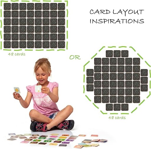 ГРАЙТЕ, ЩОБ НАВЧАТИСЯ: усі картки — це закруглені квадрати з натурального дерева. Картки з жирним шрифтом легко лягають у дитячі руки. Кожна ілюстрація має суцільний фон різного кольору, щоб її було легше запам’ятати. Діти розважаються та навчаються в цій концентраційній грі, яка є чудовим засобом для тренування пам’яті та мислення. Спостерігайте, як ваша дитина вдосконалюється з кожним новим раундом.