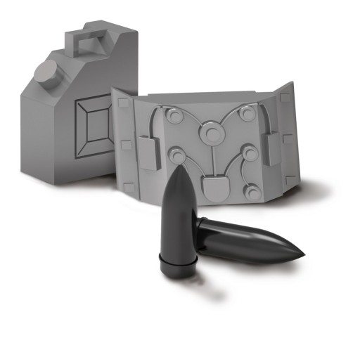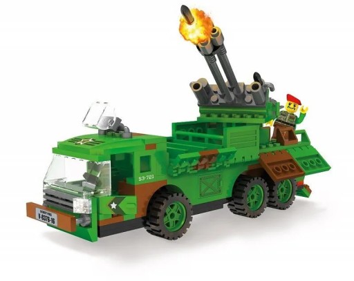 З блоків можна побудувати військову машину з ракетною установкою. У набір входять дві фігурки.