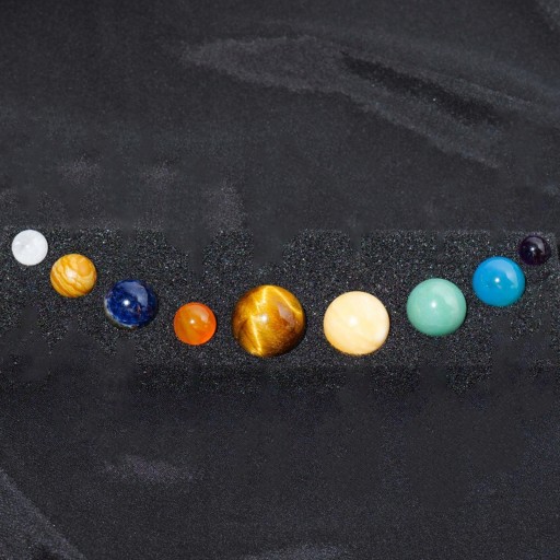 Різні кольори та розміри для представлення різних планет: виготовлений із полірованого дорогоцінного каменю, вибір каменю дуже добре поєднується із загальним кольором і навіть деякими закрученими елементами, які імітують вигляд планет.