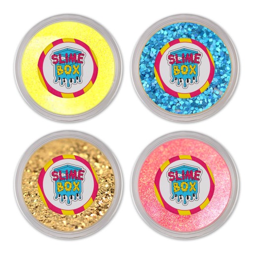 - 4 великі упаковки (30 мл) голографічних блискіток Slimebox