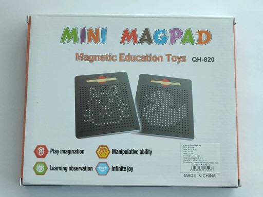 Коли стилус знаходиться на поверхні дошки, кульки заповнюють отвори та створюють потрібні форми. Кожну кулю можна легко заховати. Кожну композицію можна легко стерти - втиснувши кульки в центр дошки. Навчання веселе та безпечне, тому MagPad розроблено таким чином, що магнітні кульки неможливо зняти. Комплектація: магнітний стилус, 16 паперових інструкцій із шаблонами.