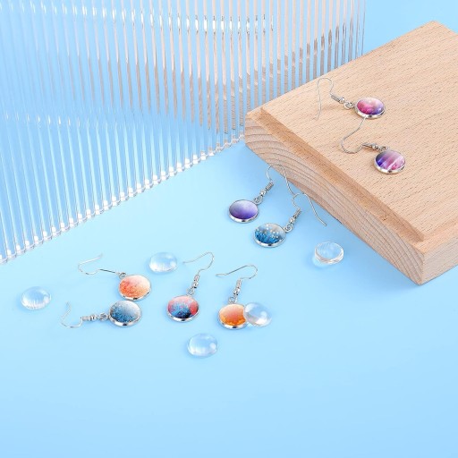 Міцний матеріал: кожна порожня підставка для сережок виготовлена з нержавіючої сталі, міцної, зносостійкої та не іржавіє. Кабошони виготовлені зі скла, яке є прозорим і міцним, його нелегко зламати, ідеально підходить для напівпрозорих лотків для розміщення приладдя для виготовлення ювелірних виробів.