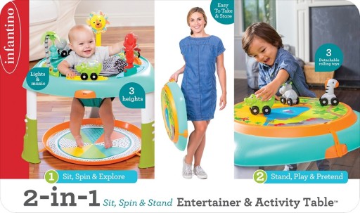 Коли дитина підросте і навчиться самостійно ходити, стіл перетворюється в стоячий ігровий столик з пейзажем зверху і триколісними тваринами.