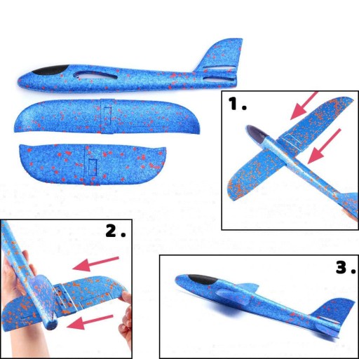 - З ПІНОПОЛАНУ -завдяки цьому ваша дитинаможе грати зарохяк вдома, так і на вулиці.Літакне здатний завдати шкоди квартирічерез свою легкість.Вам не потрібно турбуватися про можливі втративикликана грою втіхи.
