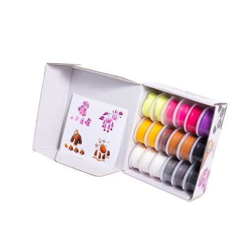 У комплекті не тільки достатньо матеріалу, але і великий вибір кольорів. Матеріал легко моделювати вручну, пресувати, вирізати за допомогою різних форм.