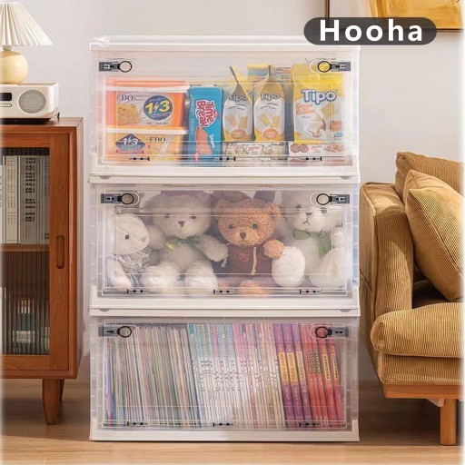 ▶Багатофункціональний складаний ящик для зберігання Hooha може бути схожим на прилад, спальню, полиці шафи, кухню, багажник автомобіля. ЗРУЧНИЙ 3-ДВЕРНИЙ ДИЗАЙН: стильний напівпрозорий бічний дизайн і двоє бічних дверей для легкого пошуку та доступу до будь-чого, не відкриваючи кришку.