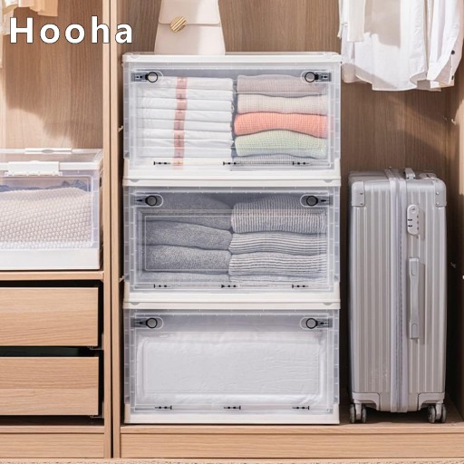 ▶Багатофункціональний складаний ящик для зберігання Hooha може бути схожим на прилад, спальню, полиці шафи, кухню, багажник автомобіля. ЗРУЧНИЙ 3-ДВЕРНИЙ ДИЗАЙН: стильний напівпрозорий бічний дизайн і двоє бічних дверей для легкого пошуку та доступу до будь-чого, не відкриваючи кришку.