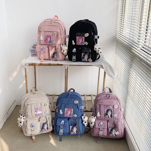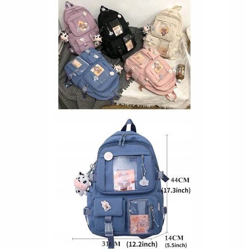 ???? Характеристика: рюкзак містить основну сумку з великим внутрішнім відділенням, 3 передніми кишенями та 2 бічними кишенями. Завдяки цим кишеням ваші речі впорядковані, і ви легко знайдете те, що вам потрібно. Бретелі регулюються. Включає милі значки, підвіски та листівки.