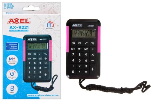 Переваги продукту: Функціональний калькулятор для офісу, школи та домашнього використання. Міцна конструкція та міцні матеріали гарантують тривалий термін служби калькуляторів. Калькулятор має незалежну пам'ять, функцію автоматичного вимкнення та дисплей до 8 цифр, а також має шнурок, щоб його можна було повісити на шию. Пластиковий корпус чорно-рожевого кольору. Розміри/вага/батареї: розміри виробу Д х Ш см: 10x6, розміри упаковки Д х В х Г см: 7x12x1, вага продукту без упаковки кг: 0,03 кг, вага продукту в упаковці кг: 0, 04 кг, потрібне джерело живлення з 1 x AG10 батарейки - в комплекті. Калькулятор призначений для дітей віком від 3 років. Упаковано в коробку з плічками.