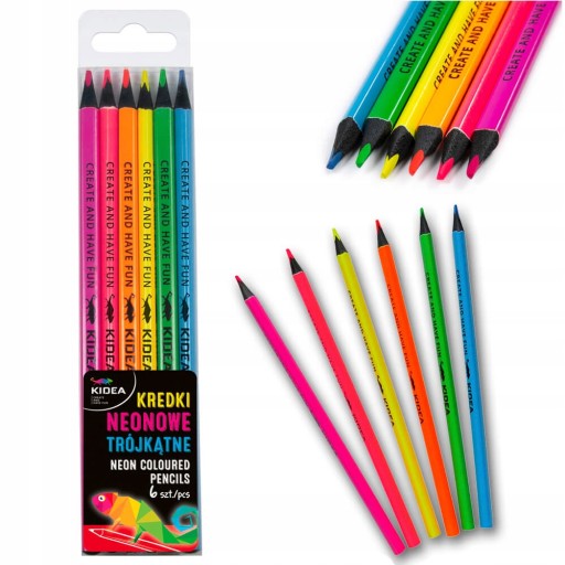 Набір із 6 кольорових олівців інтенсивних неонових кольорів.