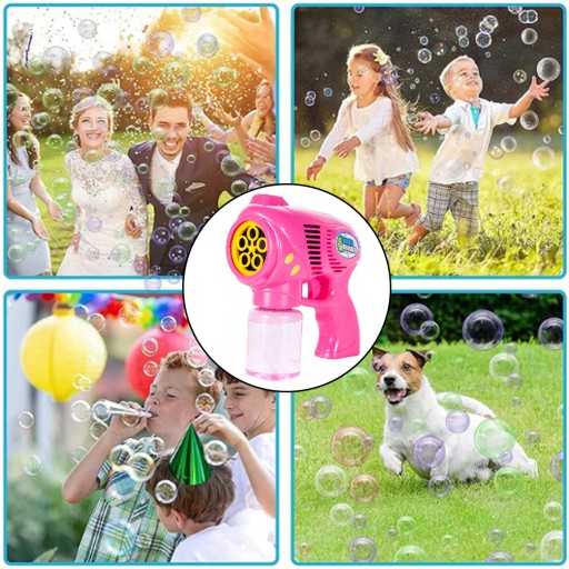 Пістолет має механізм з 5 кілець, які обертаються, створюючи чарівні райдужні бульбашки! Людина може зробити лише одну бульбашку за допомогою класичного набору, машина може зробити їх сотні!