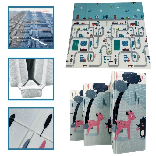 Дитячий пінопласт BodyNetics KIDs XXL 200 x 180 см у складеному вигляді + чохол, двосторонній (1: ЛІС / 2: МІСТО). Сертифікати безпеки CE, SGS, TUV, EN-71