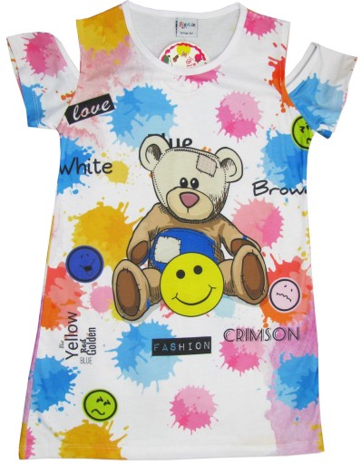 Нова бавовняна туніка з ведмедиком білого кольору з короткими рукавами, що відкривають плече. Дуже цікавий кольоровий принт. Приємний, легкий і м'який на дотик. Оригінальний товар з біркою.